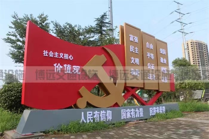 由于現(xiàn)在很多的場所都會響應(yīng)號召,黨建標(biāo)牌也成為了當(dāng)下比較盛行的的黨建思維宣揚形式,所以黨建標(biāo)牌在建設(shè)的時候要做到創(chuàng)意新穎、造型獨特,但不能偏離黨建思維,事實上黨建標(biāo)牌和社會主義價值觀標(biāo)牌在設(shè)計風(fēng)格上多多少少都有相似之處,主色調(diào)都是赤色為主,表現(xiàn)出明顯的特征。