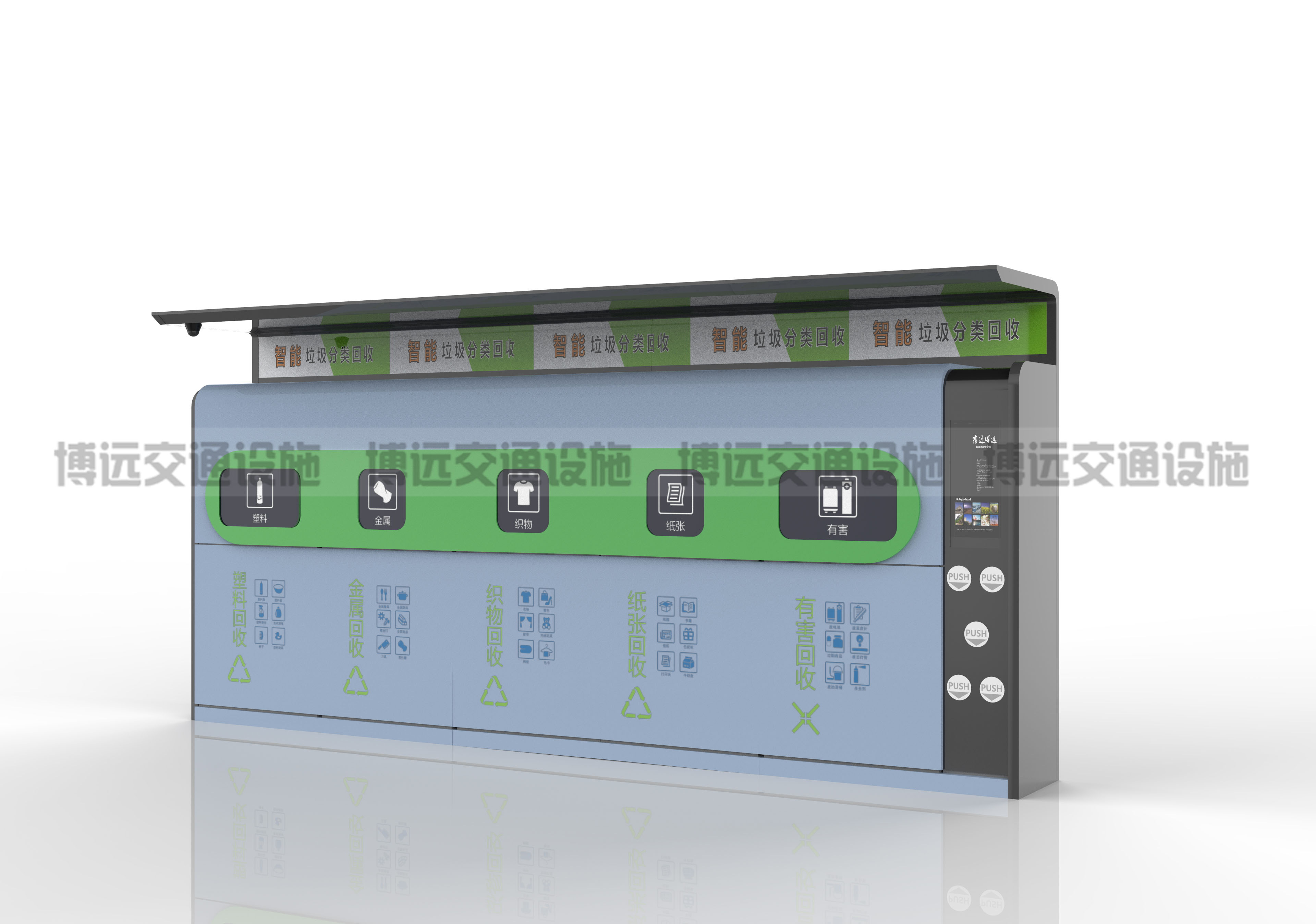 現(xiàn)代科技迅速發(fā)展,垃圾分類(lèi)設(shè)備也開(kāi)始智能化。智能垃圾分類(lèi)箱為深化垃圾分類(lèi),建造美好的宜居環(huán)境奉獻(xiàn)著更大的力量。宿遷博遠(yuǎn)交通設(shè)施與您一起為建設(shè)美好家園助力!!