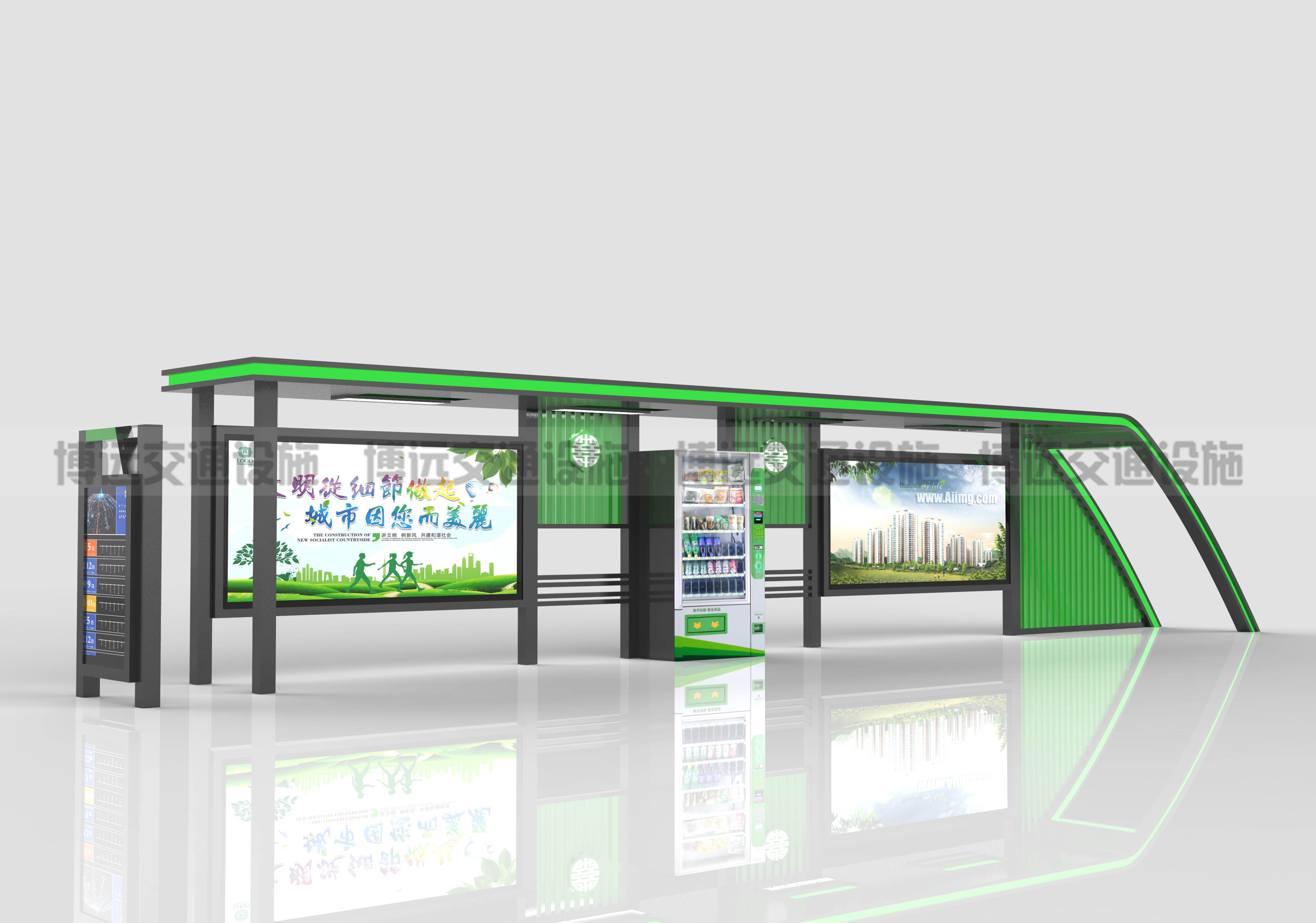 公交車站候車亭的規(guī)劃風(fēng)格,體現(xiàn)了年代在不斷發(fā)展改進(jìn)的目標(biāo),好的產(chǎn)品會(huì)更好的呈現(xiàn)在咱們的視界中,相信在未來(lái)候車亭規(guī)劃會(huì)愈加的智能化、人性化。