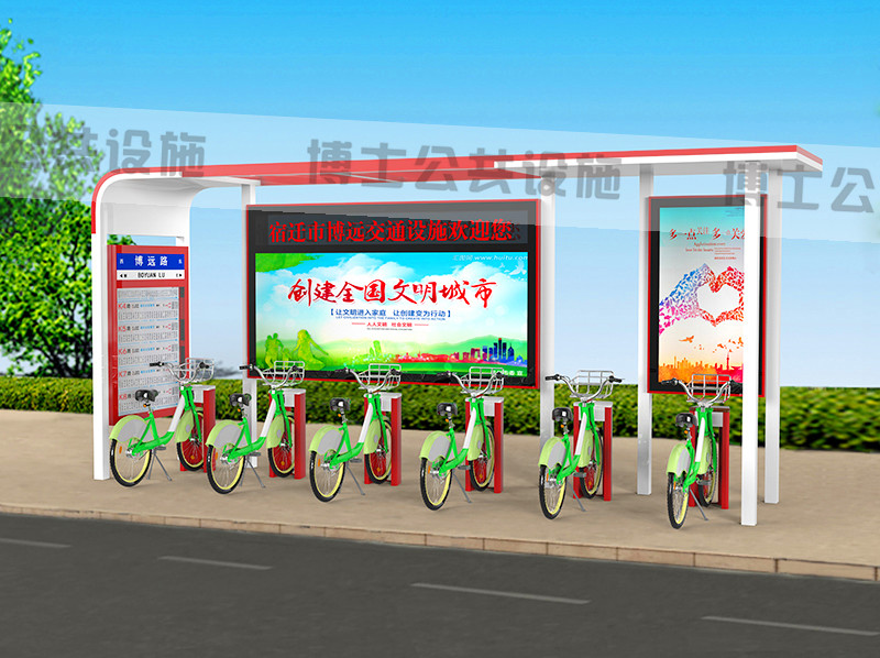 整體骨架、外封板、內(nèi)部墻體、門面及常規(guī)配置是自行車服務(wù)亭的重要組成構(gòu)件,而棚的組成跟候車亭是一樣的,除此之外只是多了一道自行車車位鎖的安裝。