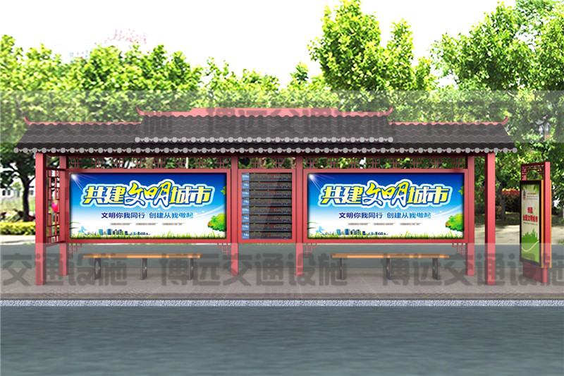 古典文明是一股清泉,洗滌著心里的浮躁與焦灼。 因而復(fù)古變成了越來(lái)越多的國(guó)人巴望的精力需求,而公交車作為現(xiàn)代化日子中一個(gè)代表性的產(chǎn)品,在方便了人們的日子之時(shí),也加快了人們的腳步,使人們沒(méi)有時(shí)刻停下來(lái)好好的賞識(shí)身邊的風(fēng)光,沒(méi)有精力好好的思考日子中的美好。公交車候車亭是一切公交車暫時(shí)?康母蹫常侨藗儠和D_步得以歇息的場(chǎng)所,不光要能讓繁忙的人們得以歇息身體上的疲乏,得以遮擋酷日的酷曬,得以遮蓋風(fēng)雨的吹打,一起還需要給與人們以精力的舒適。而仿古候車亭會(huì)是一個(gè)不二的挑選。