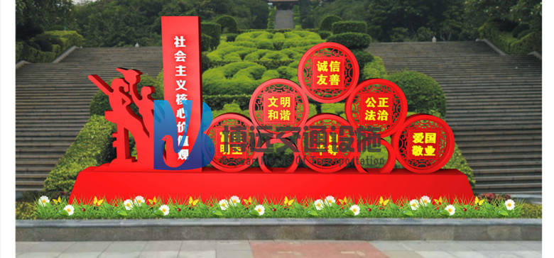 無論是在城市還是在鄉(xiāng)村,都需要文化去支撐我們不僅需要傳統(tǒng)文化,也需要當(dāng)代文化,而社會(huì)主義核心價(jià)值觀就是當(dāng)代先進(jìn)文化的典型代表,它渲染了一個(gè)地區(qū)的文化氣息,社會(huì)主義核心價(jià)值觀標(biāo)識(shí)牌在增添當(dāng)?shù)匚幕滋N(yùn)方面具有不可小覷的功效。社會(huì)主義核心價(jià)值觀標(biāo)識(shí)牌的設(shè)計(jì)可從中國傳統(tǒng)文化的精粹中汲取社會(huì)主義核心價(jià)值觀標(biāo)識(shí)牌的設(shè)計(jì)靈感,從中提煉和凝結(jié)出一些設(shè)計(jì)元素和符號(hào)以應(yīng)用到社會(huì)主義核心價(jià)值觀標(biāo)識(shí)牌的設(shè)計(jì)工作當(dāng)中去。