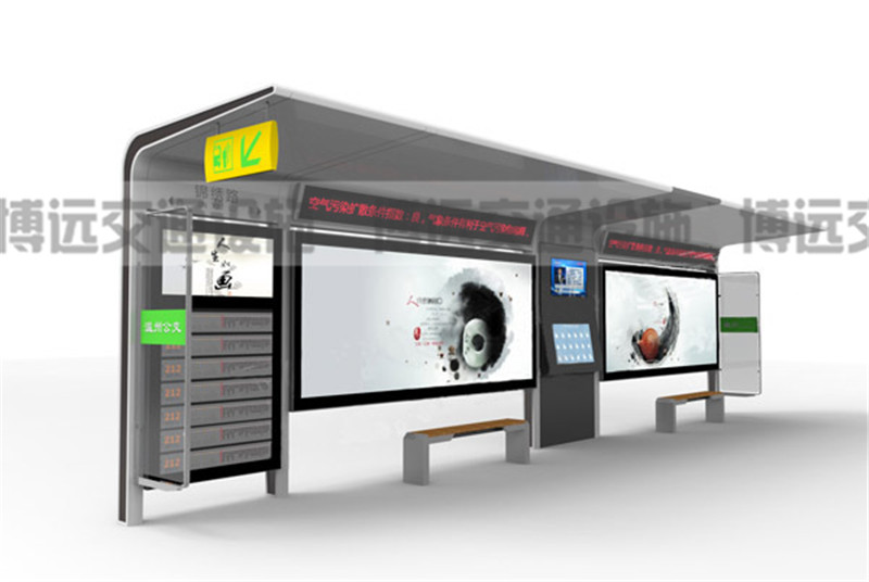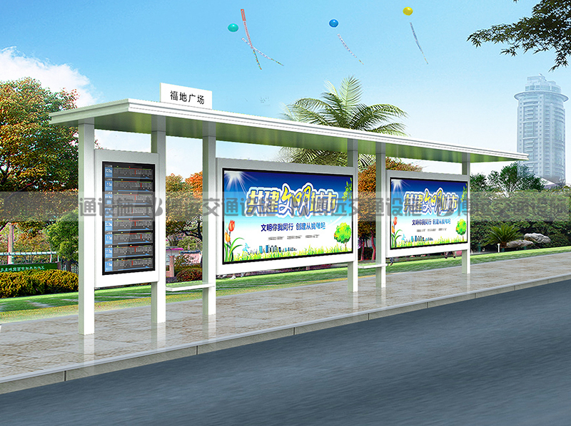 都市風(fēng)格的候車亭簡約大氣,色彩鮮亮的候車亭海報,給繁忙的都市增添色彩?稍黾覮ED顯示屏、廣告燈箱、聲控系統(tǒng)等個性化裝置,其中LED顯示屏可為市民提供報站服務(wù)、線路指引、?刻崾镜确⻊(wù),為人們出行帶來方便。