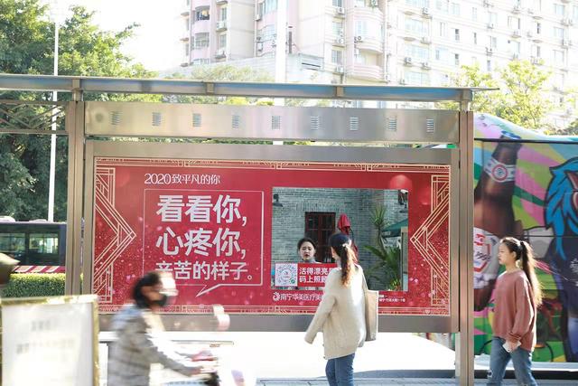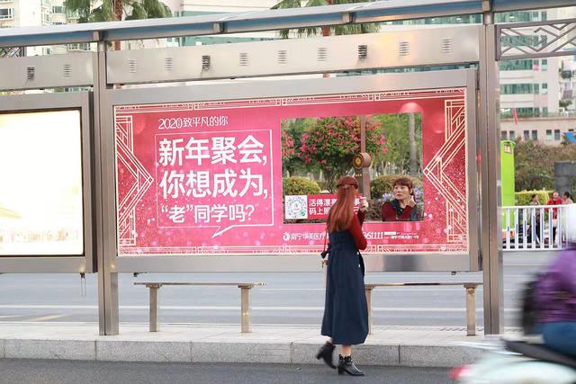 原來,是南寧路邊公交站候車亭一夜之間出現(xiàn)了一排排“魔鏡”,在魔鏡周圍是一句句年度扎心金句!
