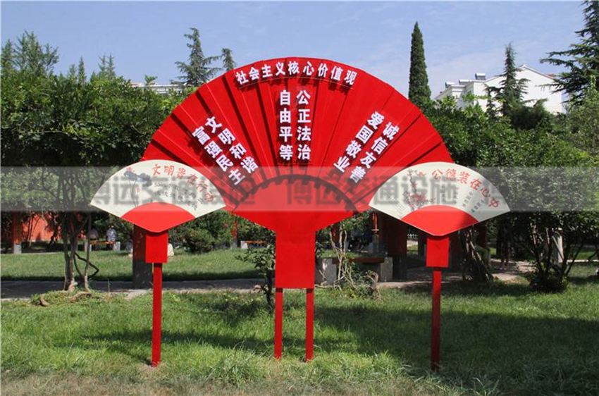 作為社會(huì)主義精力的宣揚(yáng)載體,一同作為城市或許村莊空間的藝術(shù)裝飾物,我們?cè)谝?guī)劃中要重視我國(guó)夢(mèng)中心價(jià)值觀標(biāo)識(shí)牌對(duì)空間環(huán)境的美化作用。重視中心價(jià)值觀藝術(shù)性成效的閃現(xiàn),并不是一種舍近求遠(yuǎn)的做法,兼具實(shí)用性與藝術(shù)性的社會(huì)主義中心價(jià)值觀標(biāo)牌可以在我們需求它的時(shí)分,給予我們心靈上的鼓動(dòng)和指引,而我們不需求它的時(shí)分,它與周邊環(huán)境融為一體、相映成趣,所以我們要尋求中心價(jià)值觀功用性與藝術(shù)性的一個(gè)最佳平衡點(diǎn),不能綽綽有余,而是要力求兩相得宜。